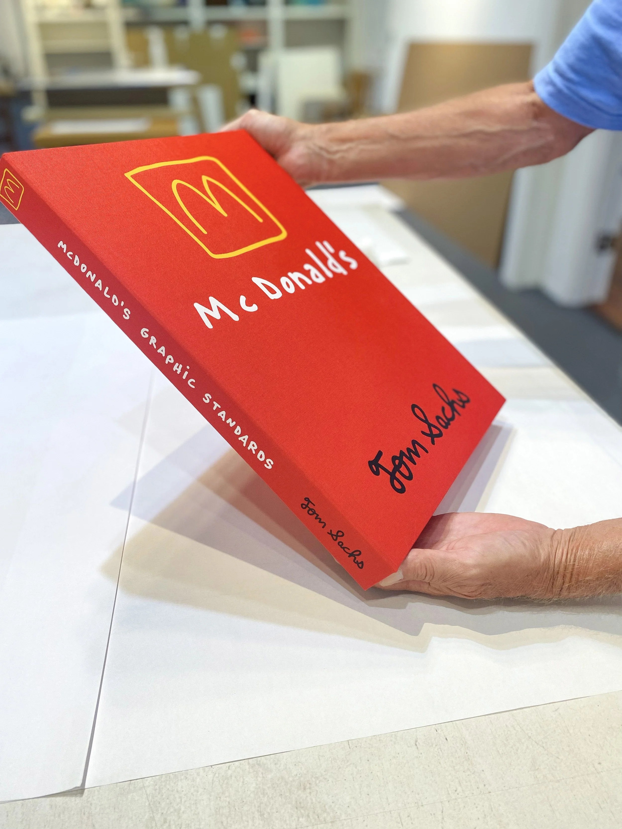 A portfolio of fifteen archival prints in a boxed set with custom white gloves. The images are reconstructed drawings by the artist based on the corporate guidebook for franchise employees.